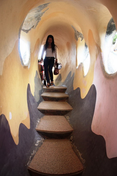 Khi bước chân vào Crazy house, ta như lạc vào mê cung đầy bí hiểm. Tôi đã hỏi chủ nhân ngôi nhà về cái sự “điên” mà thiên hạ gán cho ngôi nhà cũng như chủ nhân của nó, bà cười: Với con mắt của người bình thường và hàng xóm, thì họ đánh giá tôi là người lập dị, có suy nghĩ “không bình thường”. Họ bảo: “Có mà điên mới làm những việc éo le như thế”.