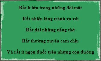 Tôi và họ không còn dám nhìn vào mặt nhau nữa. Không xa xôi nhưng ngăn cách bởi một chông chênh. Bảng lảng xa xôi. Nỗi đau riêng người ta chỉ có thể cảm hiểu chứ không thể xoáy mãi vào.
